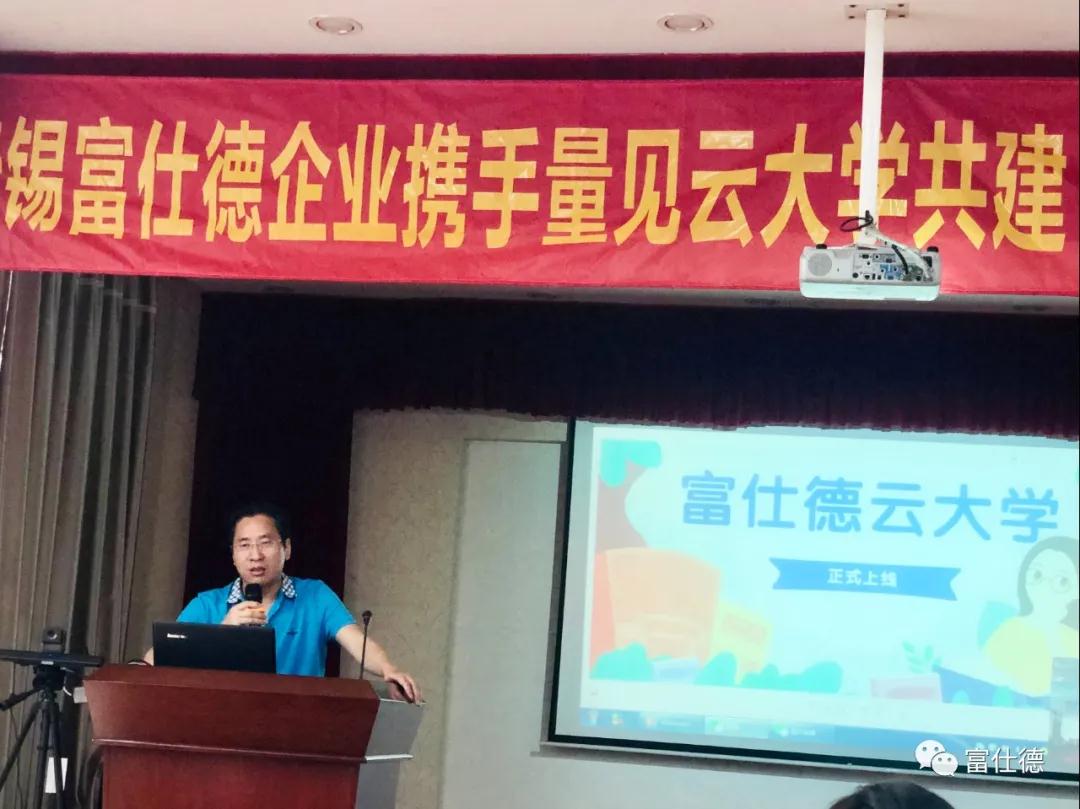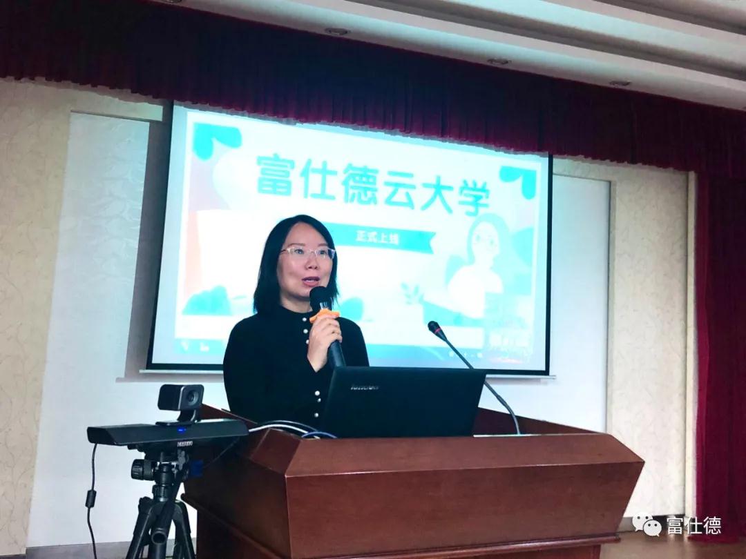接下來,我們也邀請了清華數字園黨總支書記、紫荊學苑執行院長——杜文演女士發表了講話。她講述了量見云大學的創辦初心,教育行業的現狀以及未來的愿景。杜院長表示,相信以量見云的專業云大學平臺,攜手富仕德,雙方必將通力合作,充分發揮企業優勢,帶領富仕德員工不斷提升自我,為富仕德的發展與進步共同努力。