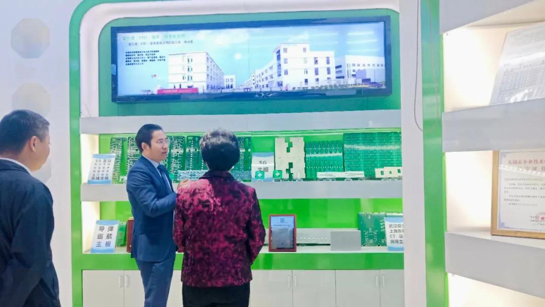 (邵亞國在向領導介紹我司5G高頻微波覆銅基板)