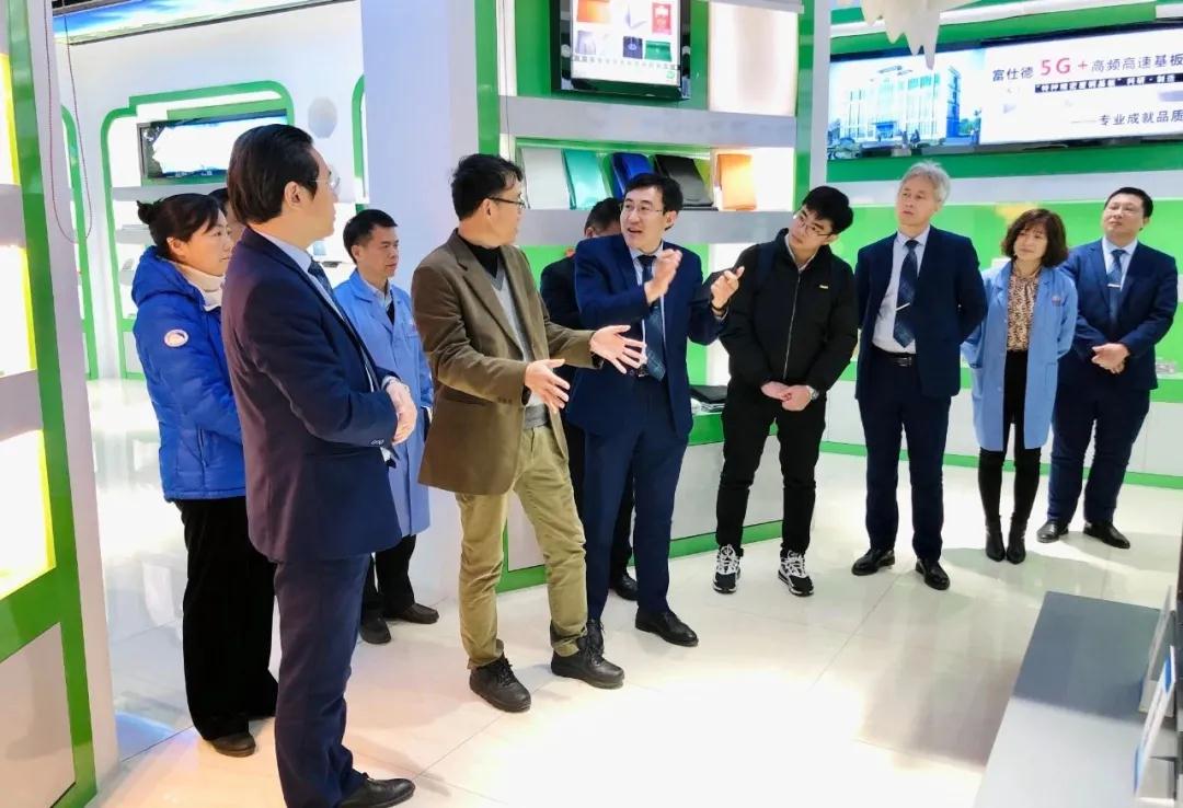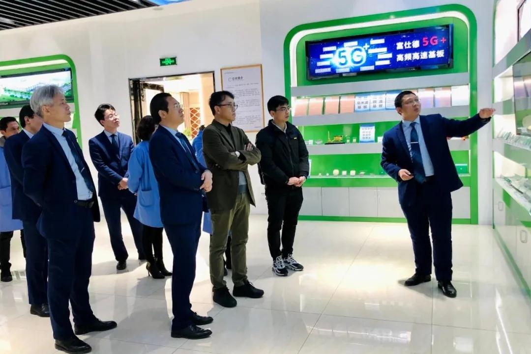 葉林院士一行參觀了我司展廳、SMC模壓車間、5G通訊項目車間,在參觀展廳過程中,陳初讀總經理、張向宏總經理、邵志偉總經理分別向葉林院士一行介紹了富仕德旗下“三大主題”系列產品:5G+高頻高速基板、SMC復合材料及其模壓結構件以及特種功能紡織品。