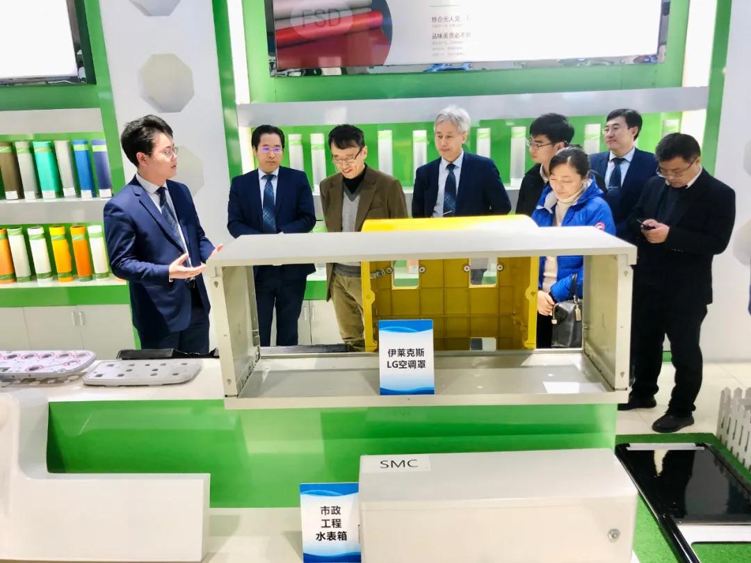(邵志偉先生向葉林院士介紹SMC復合材料及其模壓結構件)