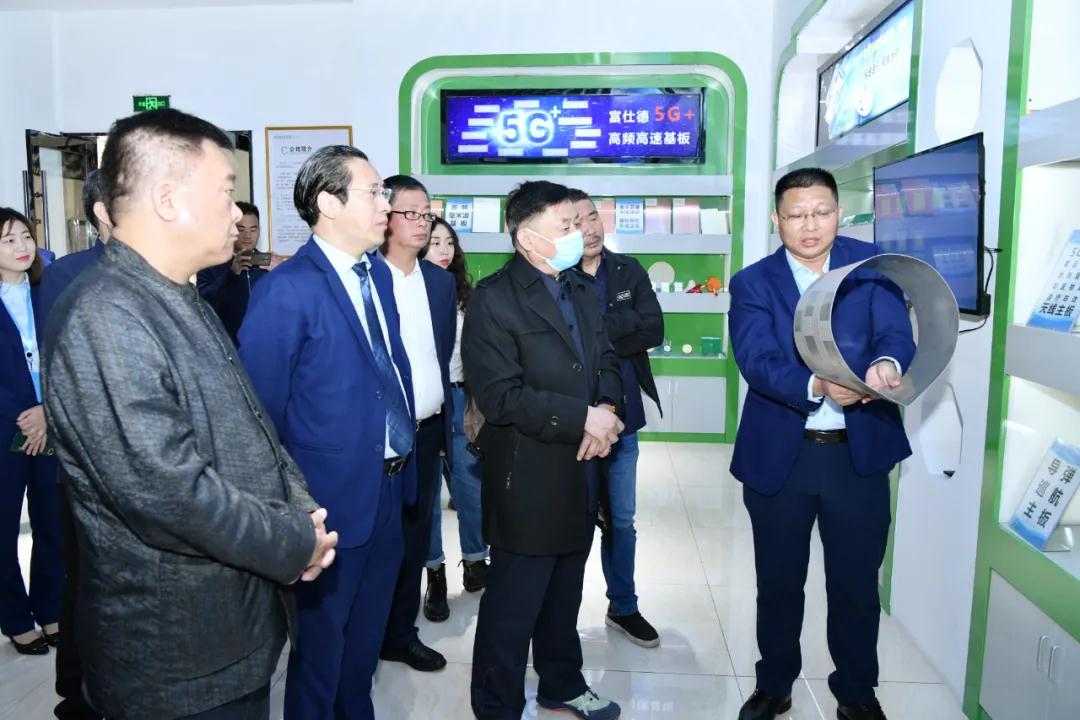 院士一行參觀了我司展廳,在參觀展廳過(guò)程中,陳初讀總經(jīng)理、張向宏總經(jīng)理、邵志偉總經(jīng)理分別向院士一行介紹了富仕德旗下“三大主題”系列產(chǎn)品:5G+高頻高速基板、SMC復(fù)合材料及其模壓結(jié)構(gòu)件以及特種功能紡織品。